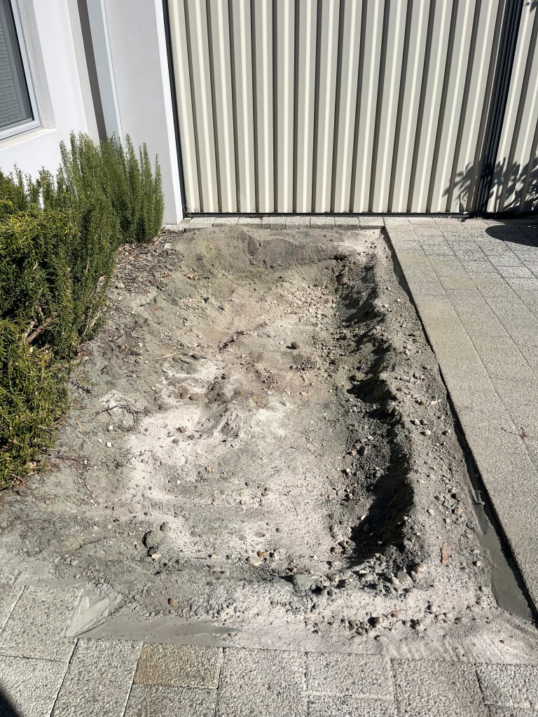 With the first five steps completed, I now just need for the concrete to harden before step six which involves digging up all the hard road base and then replacing it with soil ready to plant. Hopefully I can get this part done over the easter break.